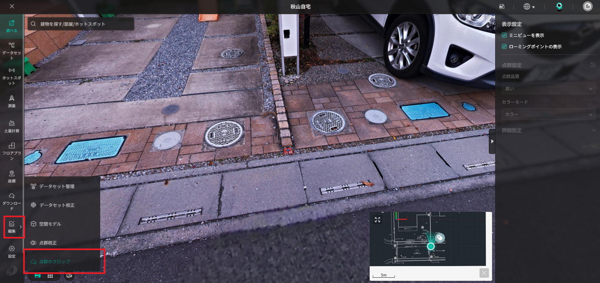 4DKanKan Cloudの編集画面から不要な点群(ノイズ)を削除します。