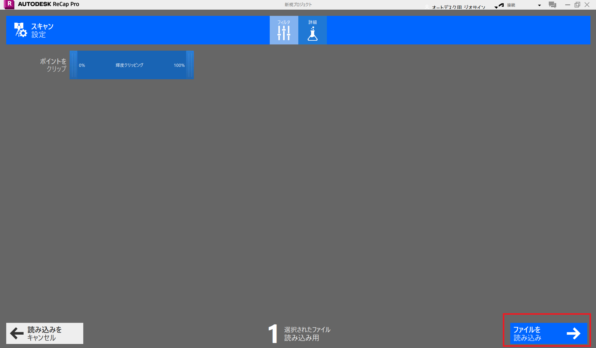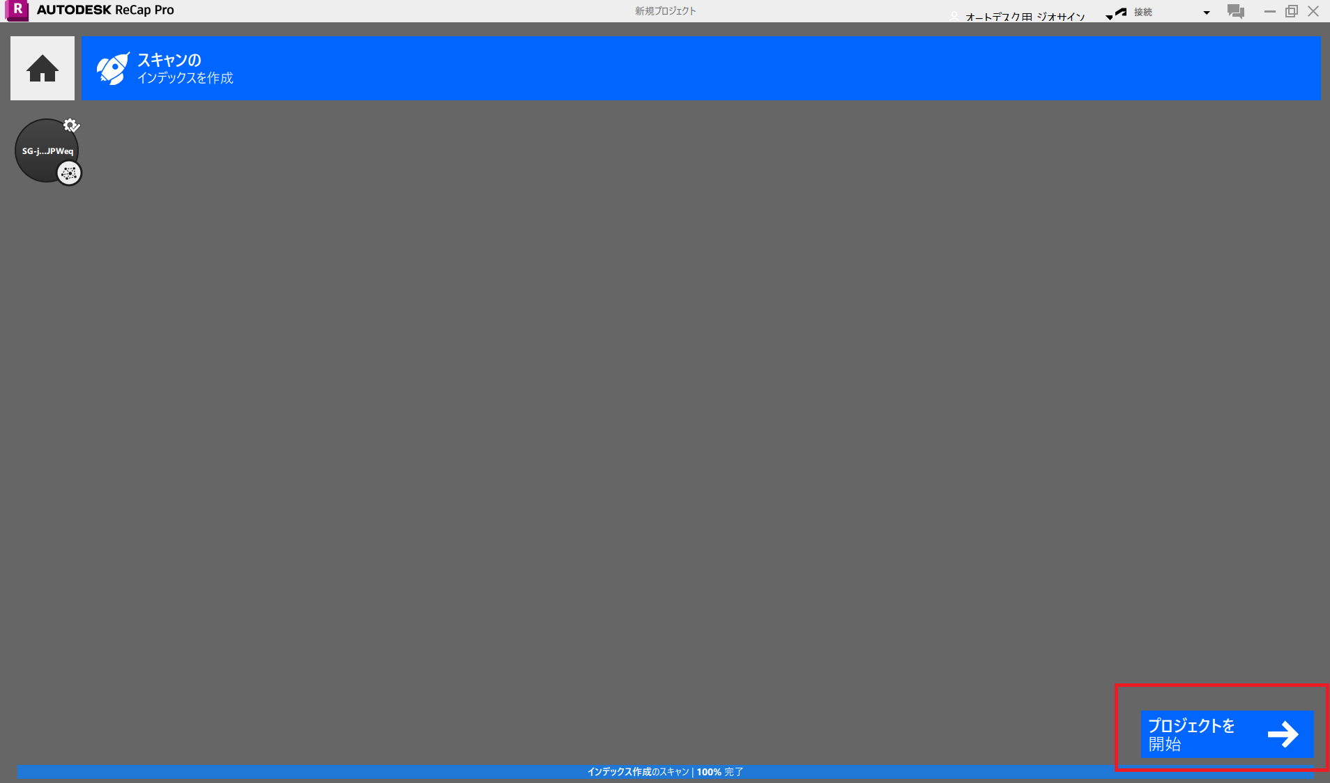 スタートメニューまたはデスクトップのショートカットから Autodesk ReCap Pro を起動します。