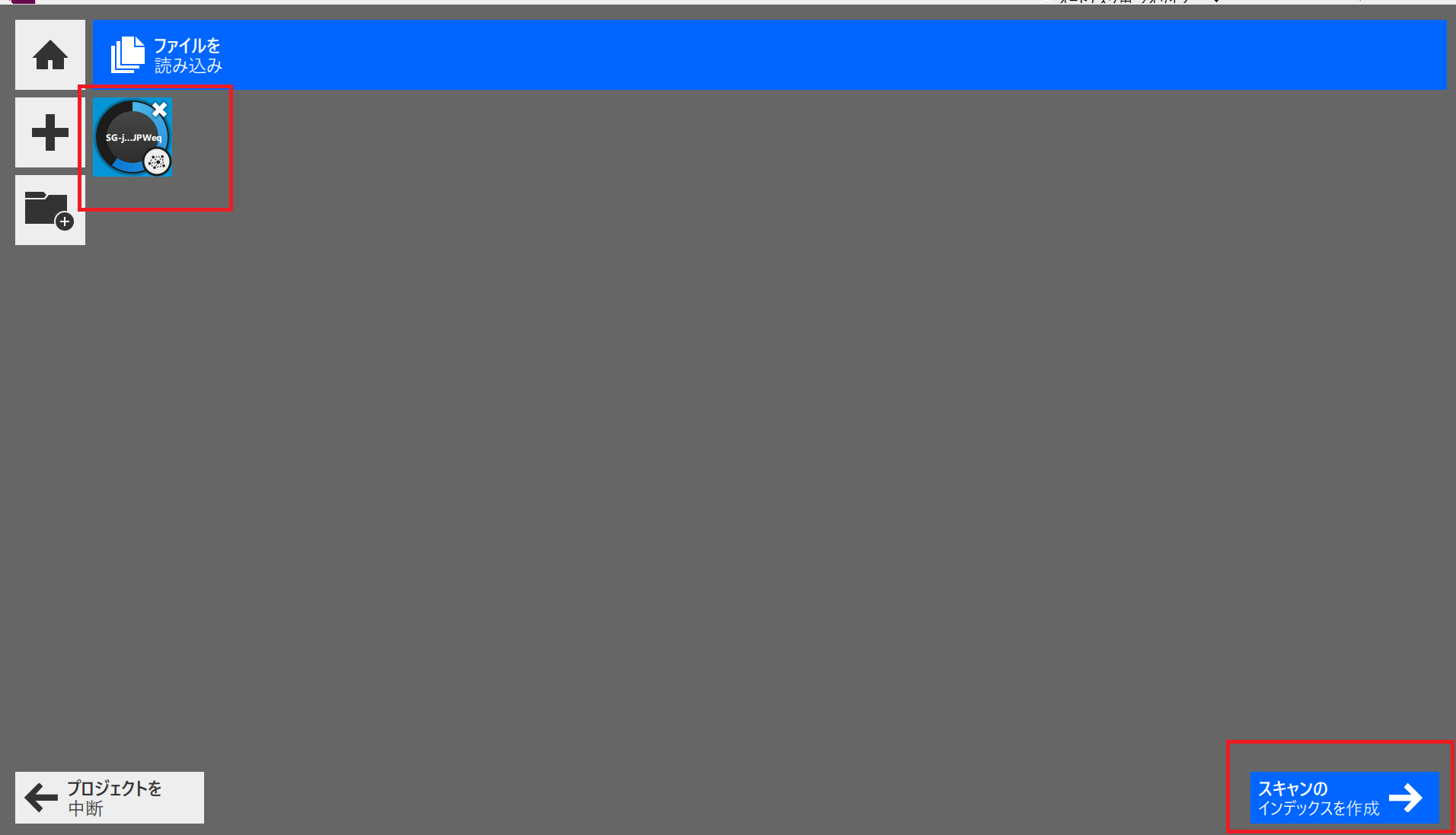 インポート後、自動的にインデックス処理が始まります。 処理中はプログレスバーが表示されます。データ量によって数分〜数十分かかります。