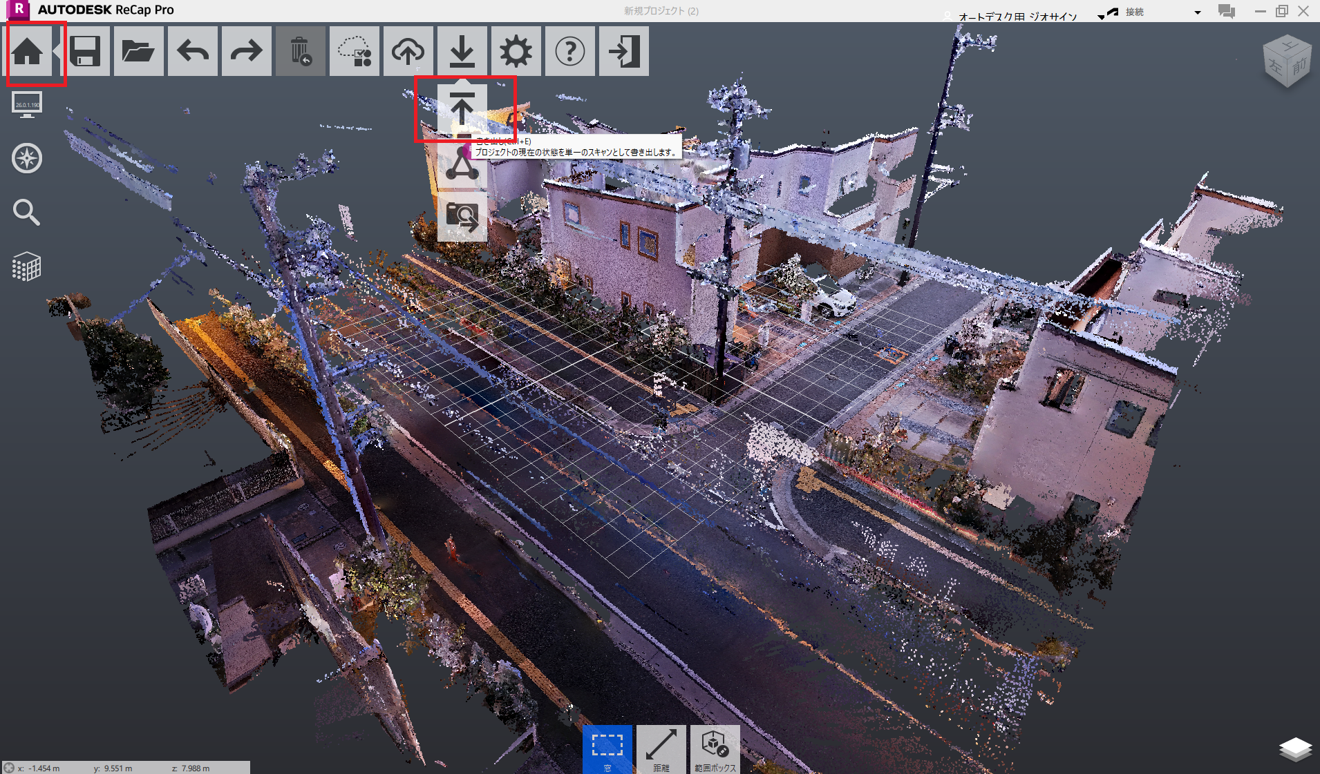 4DKanKan CloudからダウンロードしたLAS形式の点群データを、AutoCADで読み込めるRCP形式に変換します。 変換にはAutodesk ReCap Proを使用します。