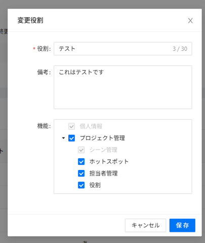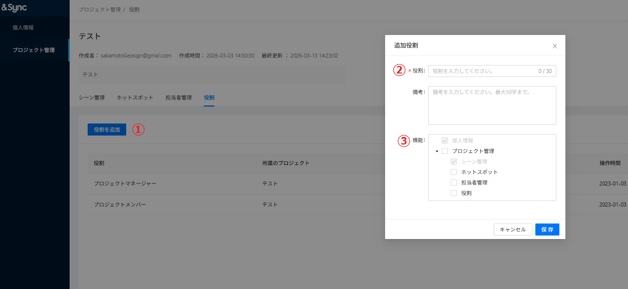 ①役割を追加:プロジェクトマネージャー・プロジェクトメンバー以外の役割を設定します。