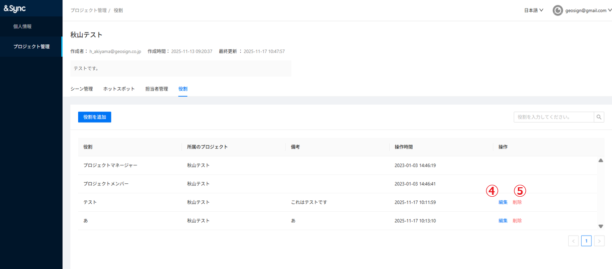 ④編集:作成した役割の編集ができます。