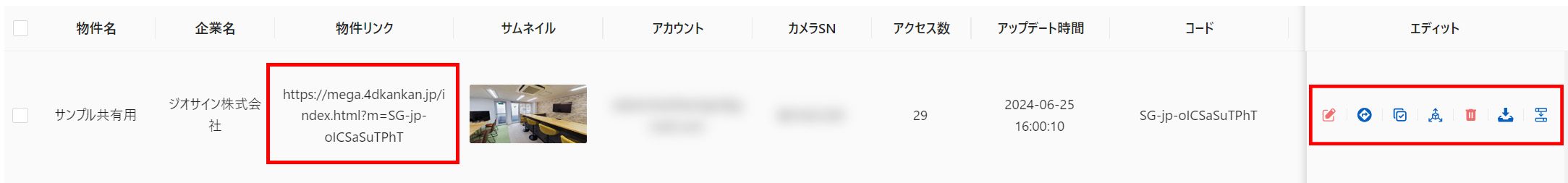 ・物件リンク: 閲覧画面にアクセスします。