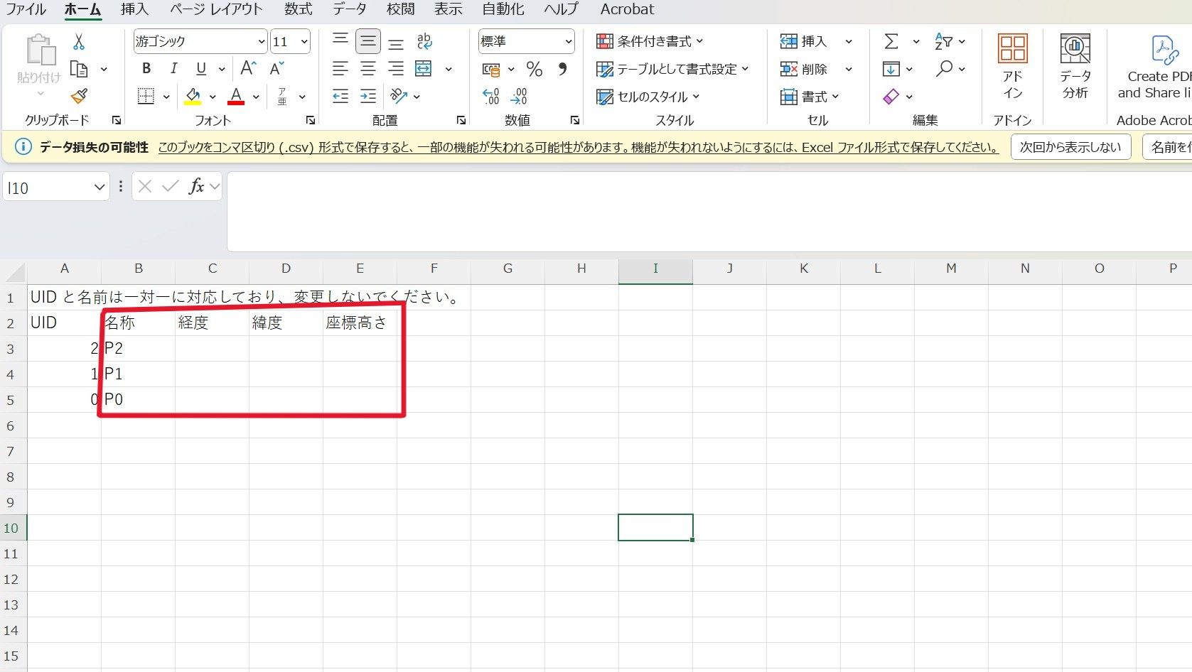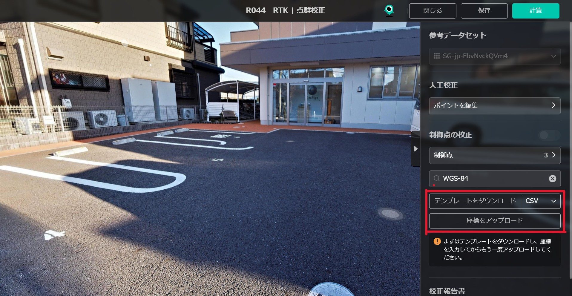 5.座標をアップロードをクリックし、csvファイルをアップロードします。