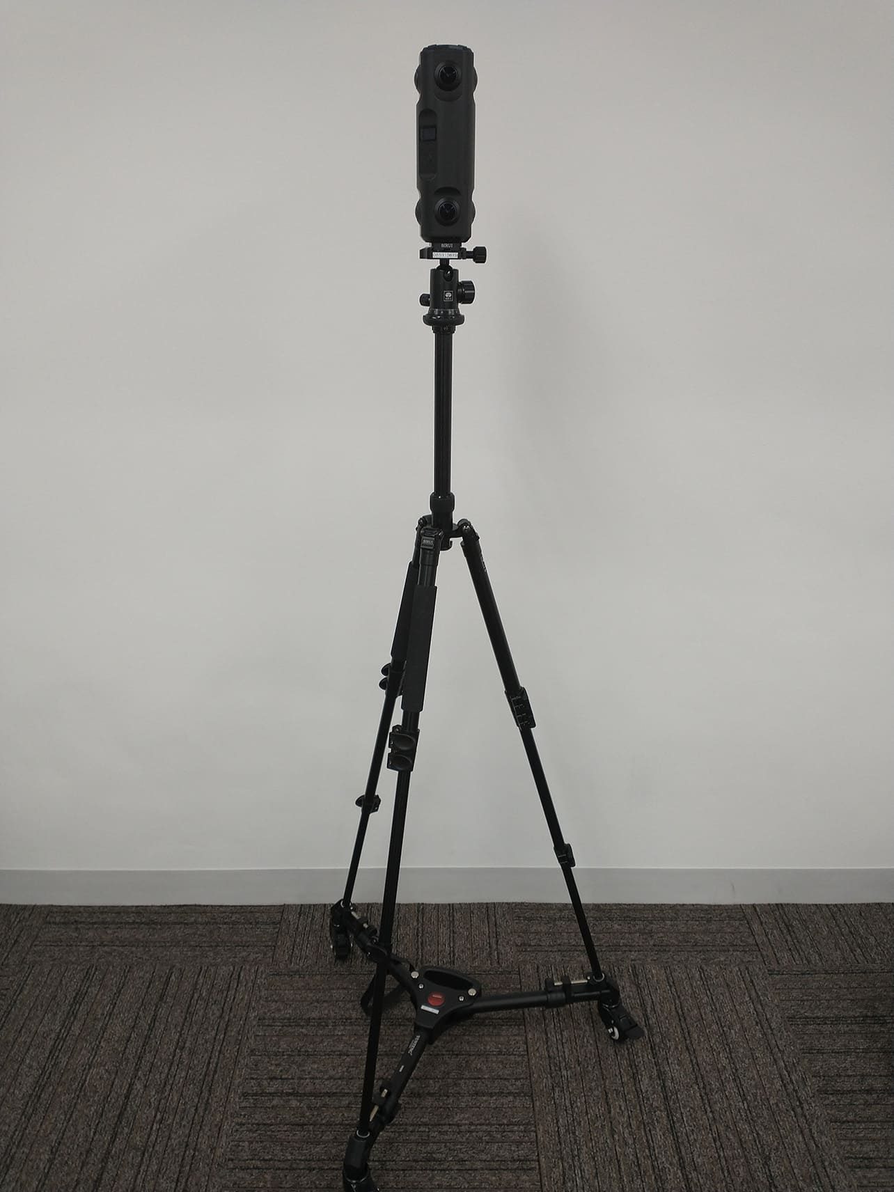カメラを三脚にセットし、カメラのレンズが人の目線くらいの高さ、地面と水平になるように角度を調整します。