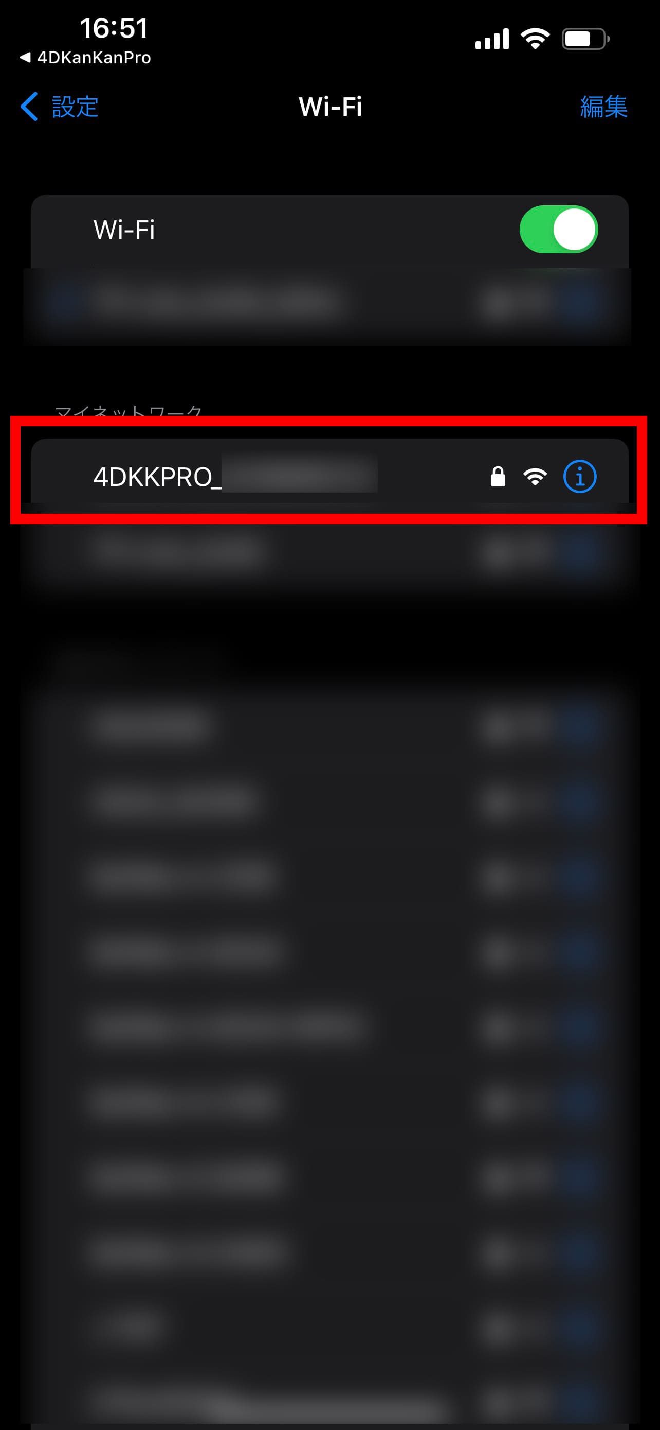 アプリの「マイページ」→「カメラ接続」をタップし、Wi-Fi接続画面へと進みます。(スマホの設定画面からでも可)