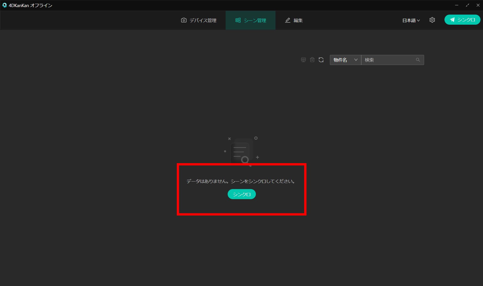シンクロをクリックします。