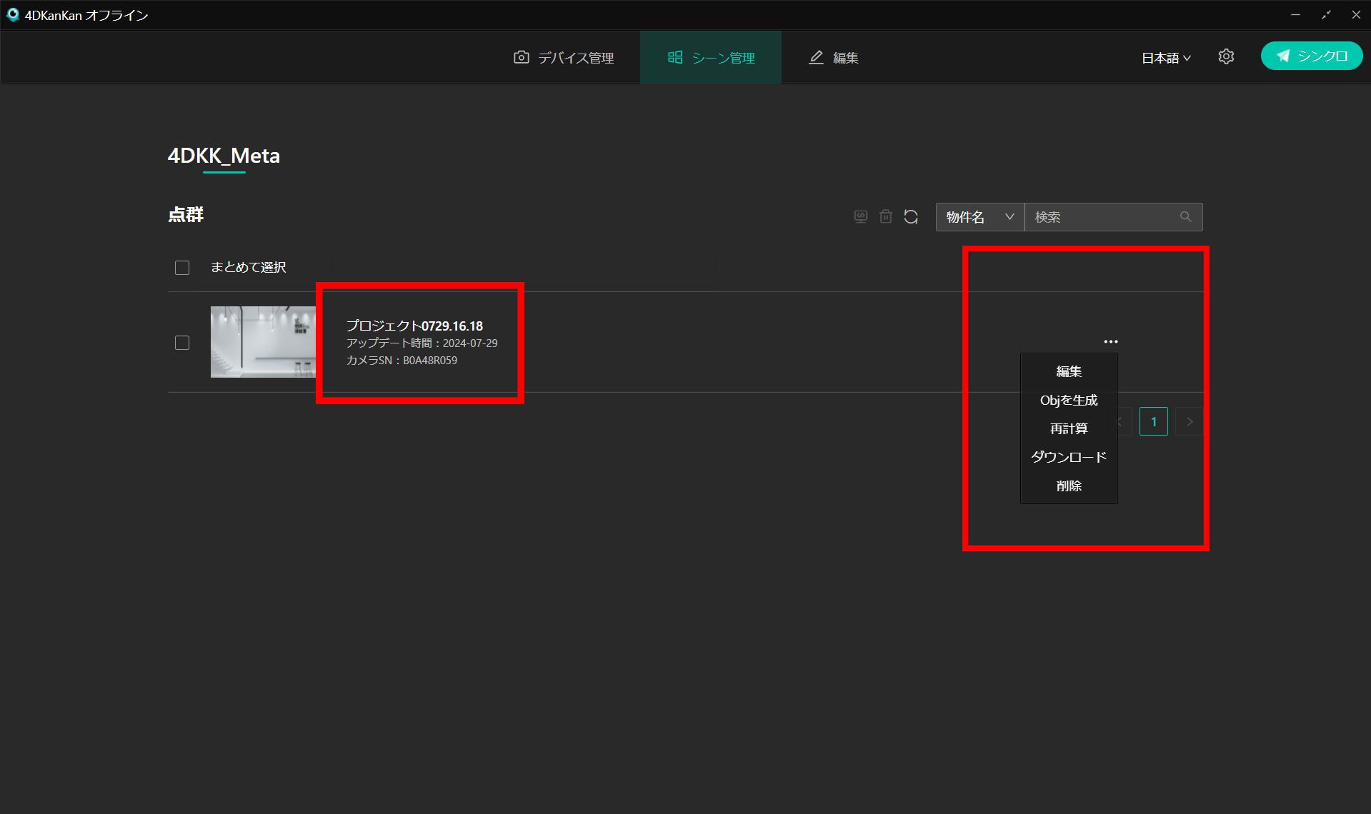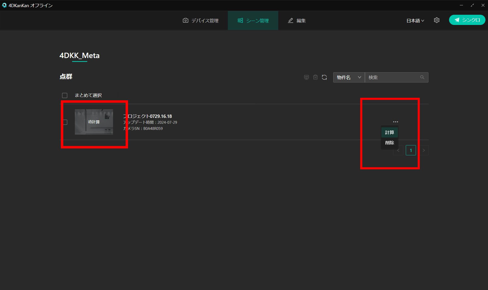 計算処理が終わると、シーンの閲覧や編集ができるようになります。