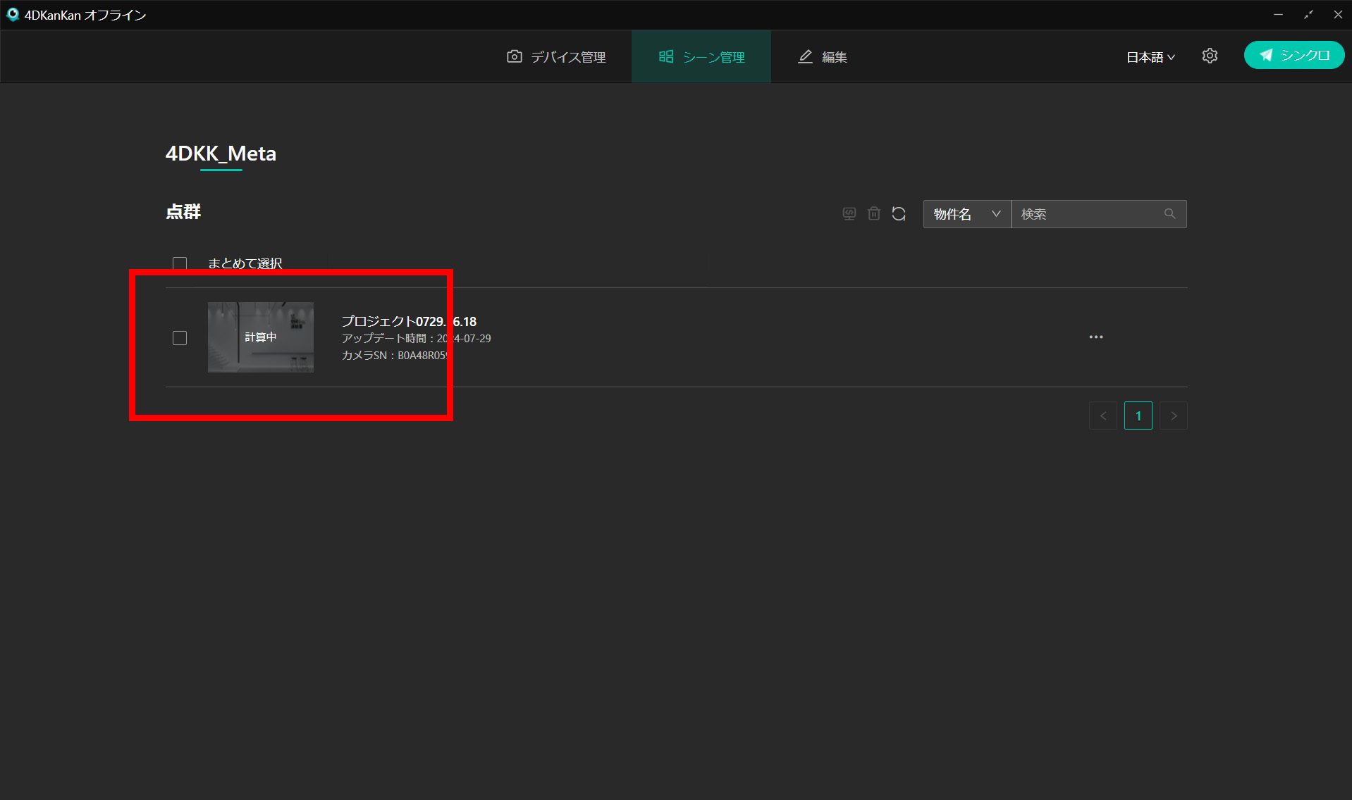 シーンの計算には時間がかかります。(目安:1撮影ポイントにつき、3~5分程度)