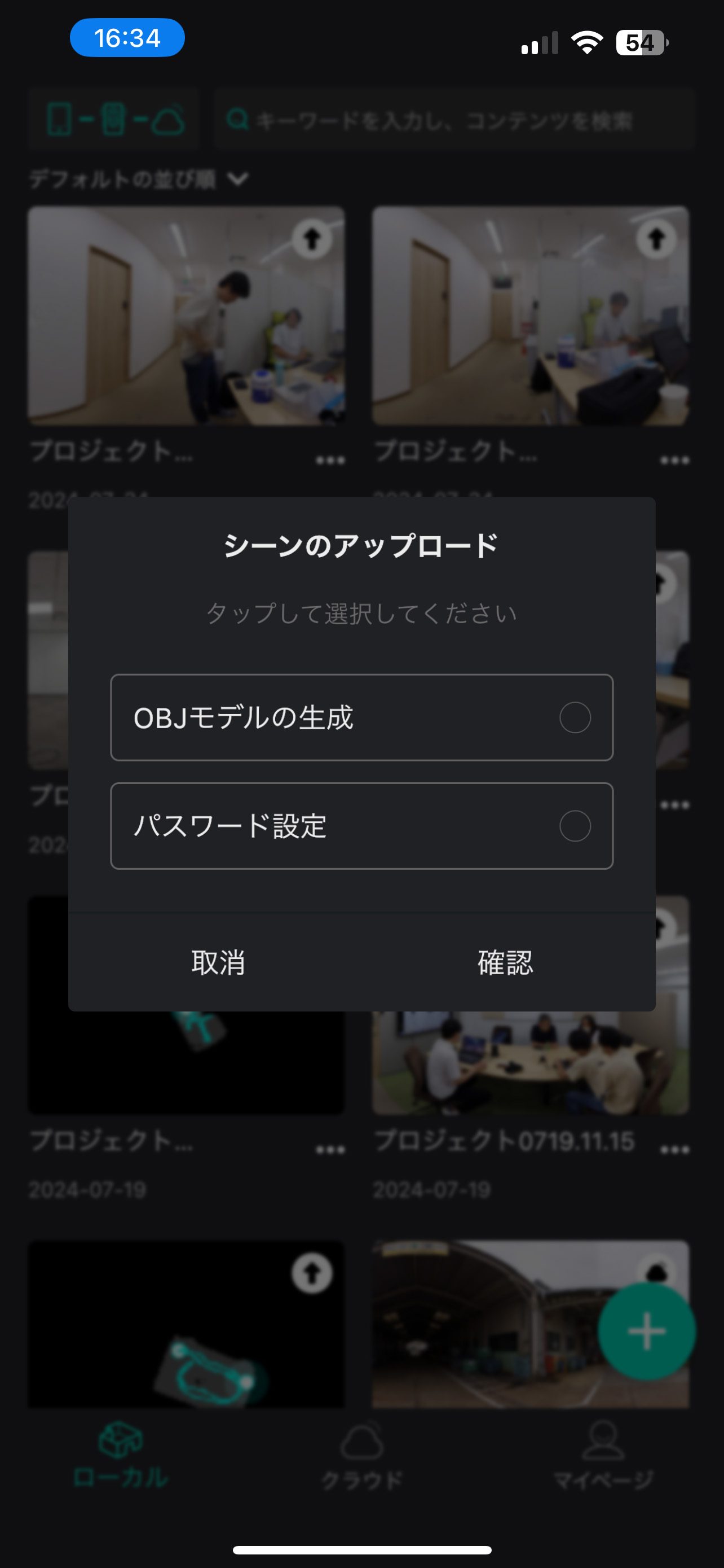 OBJモデルの生成、パスワードを設定する場合は、チェックを入れ確認を押します。