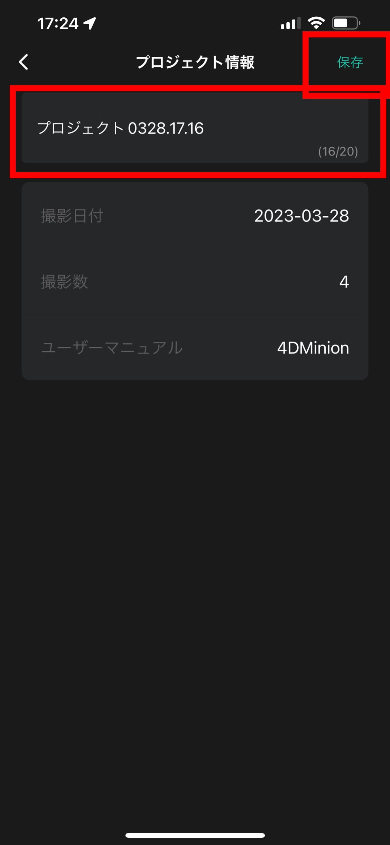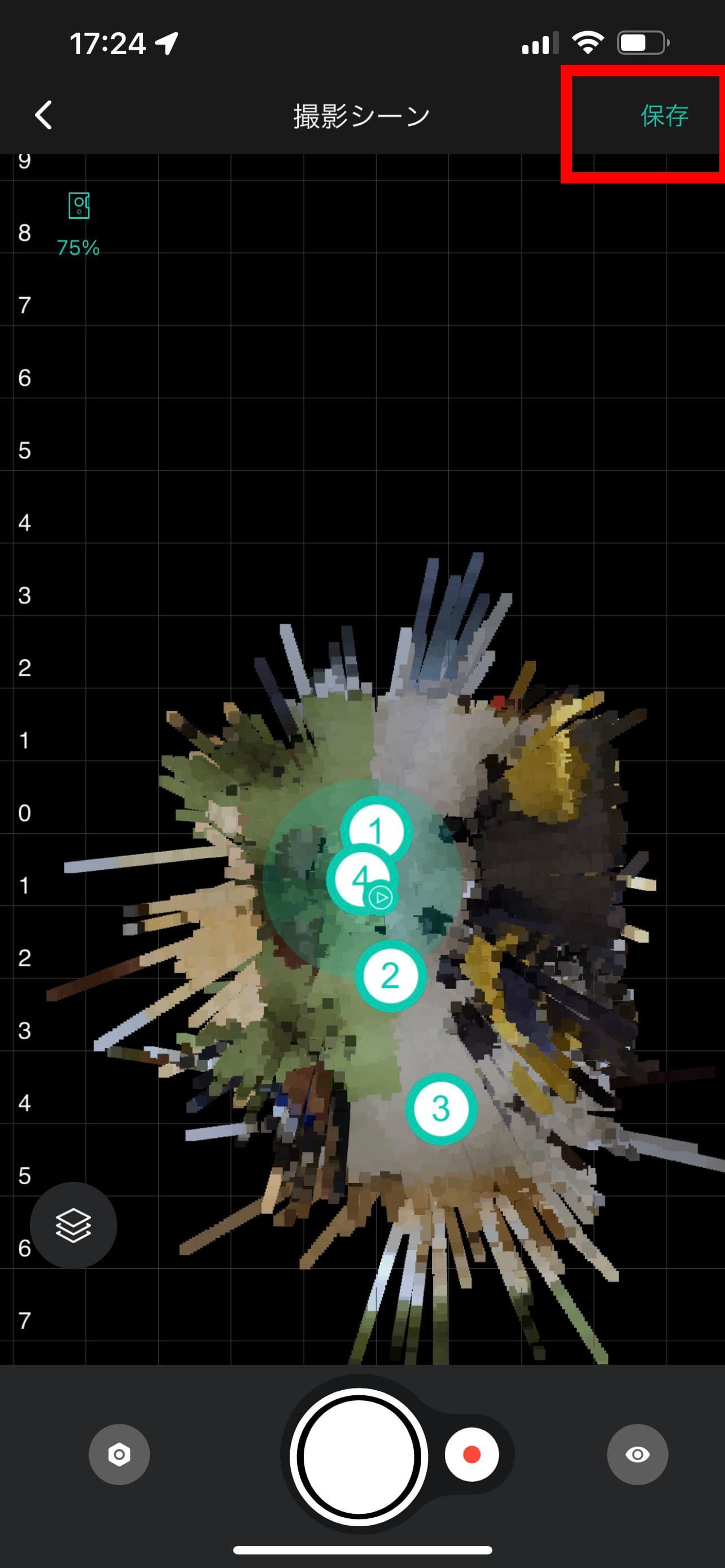 撮影が終了したら、撮影画面右上の「保存」を押します。