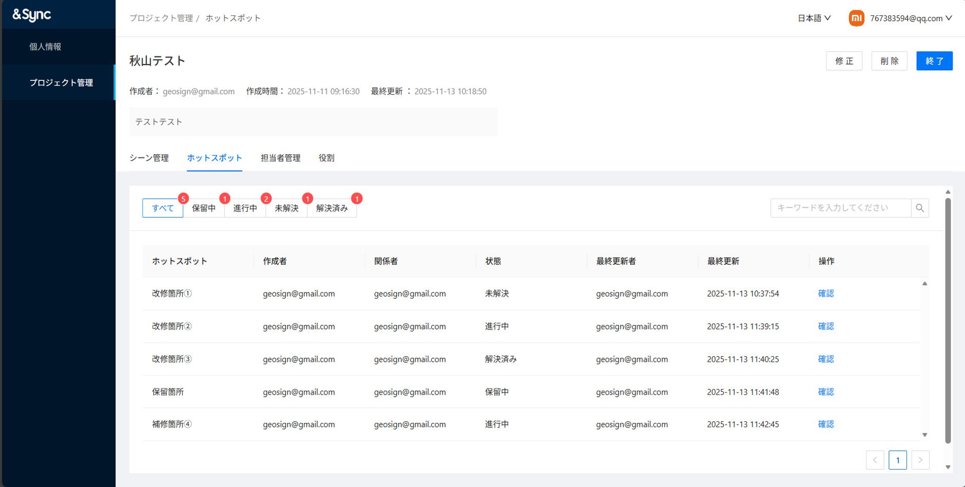 ・解決済み:ホットスポット状態「解決済み」を設定したホットスポットを一覧表示できます。